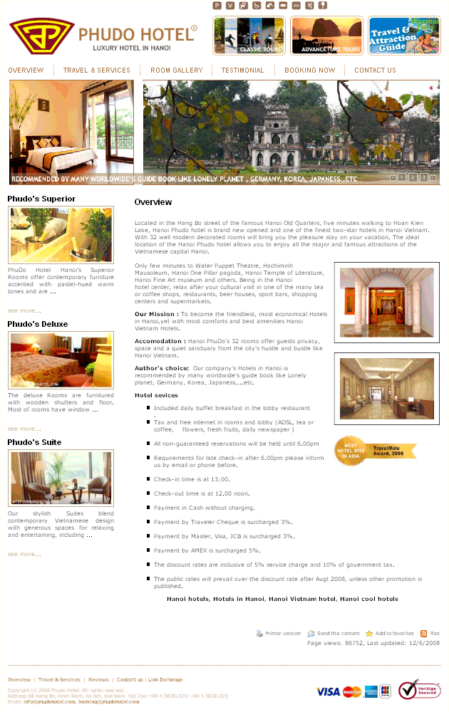 Author's choice:  Our company's Hotels in Hanoi is recommended by many worldwide's guide book like Lonely planet, Germany, Korea, Japaness....etc.